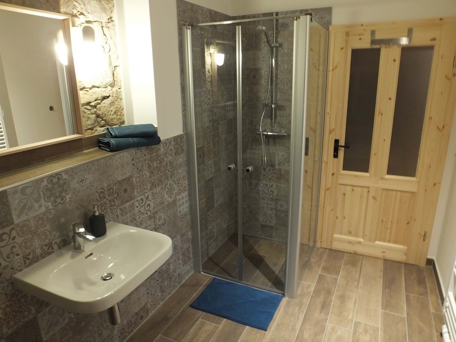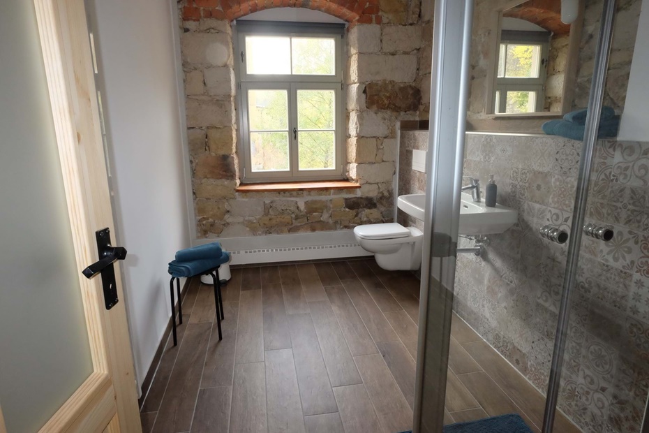 Bad mit Fußbodenheizung und ebenerdiger Dusche