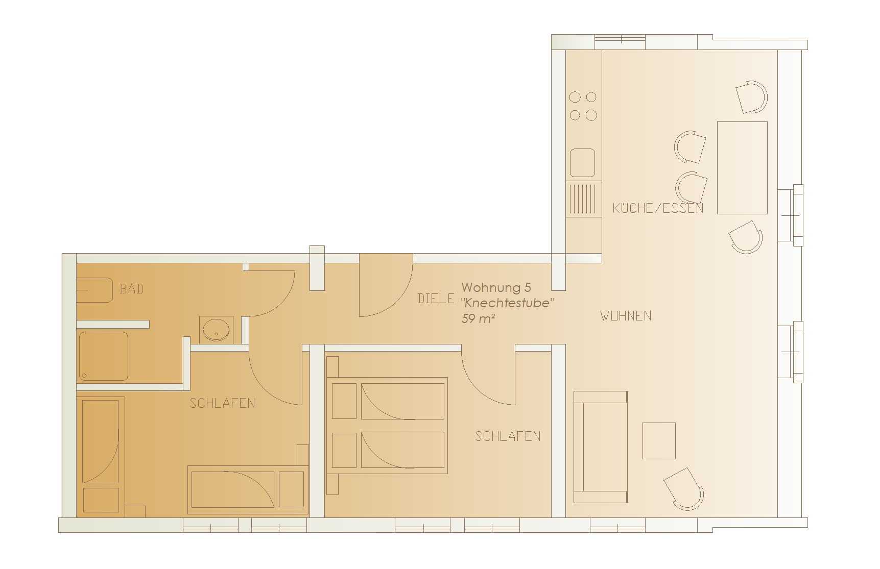 Wohnraum Couch, SAT-TV (LCD), Radio, CD-Player
