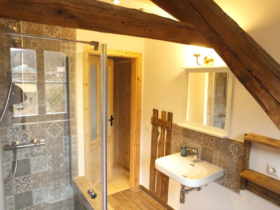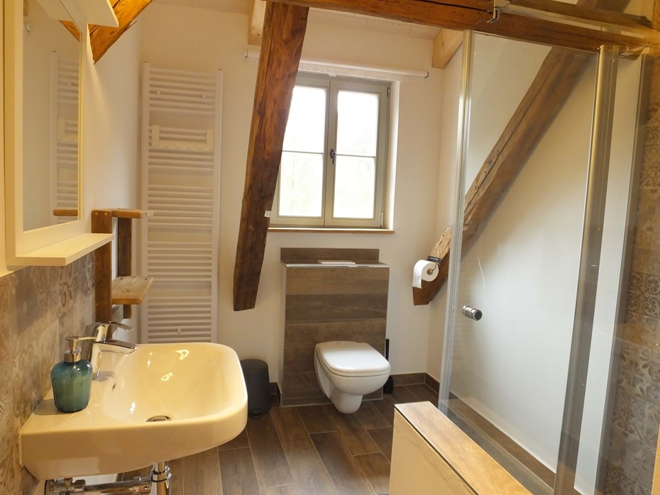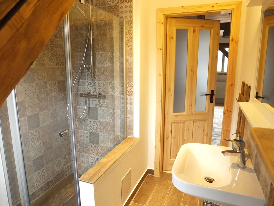 Bad mit Fußbodenheizung und ebenerdiger Dusche