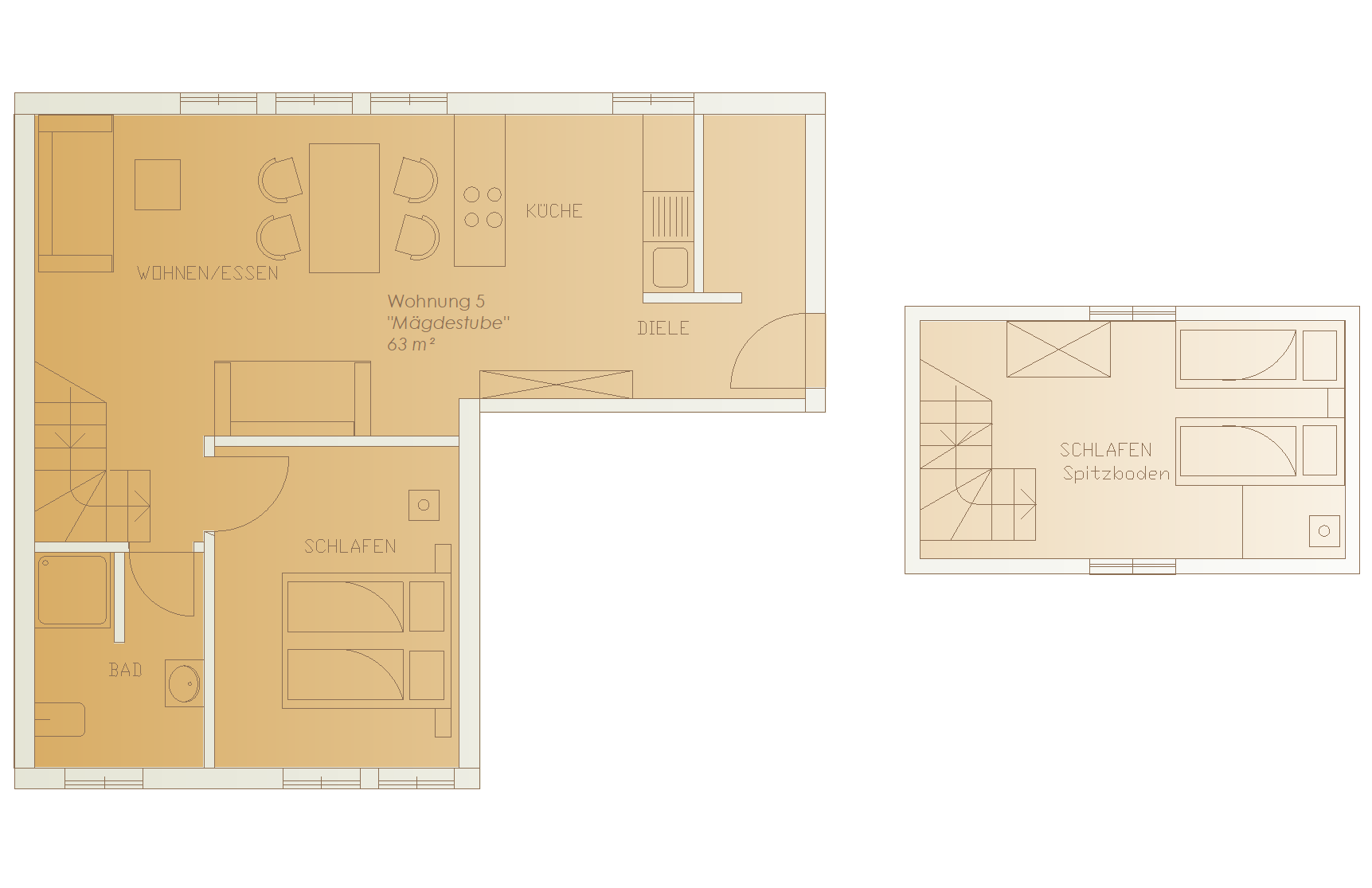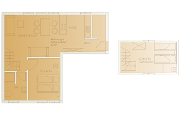 offener Schlafboden mit 2 Einzelbetten